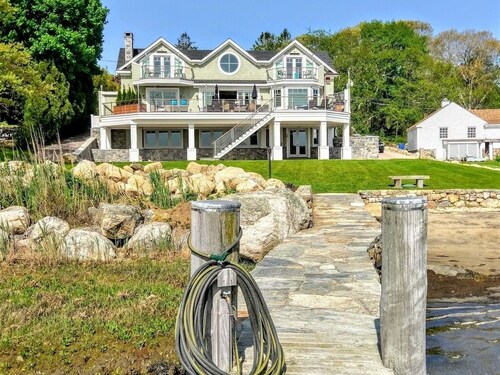 Luxury Waterfront Home Sleeps 16 Game Room Private Beach And Dock Mystic Vrbo